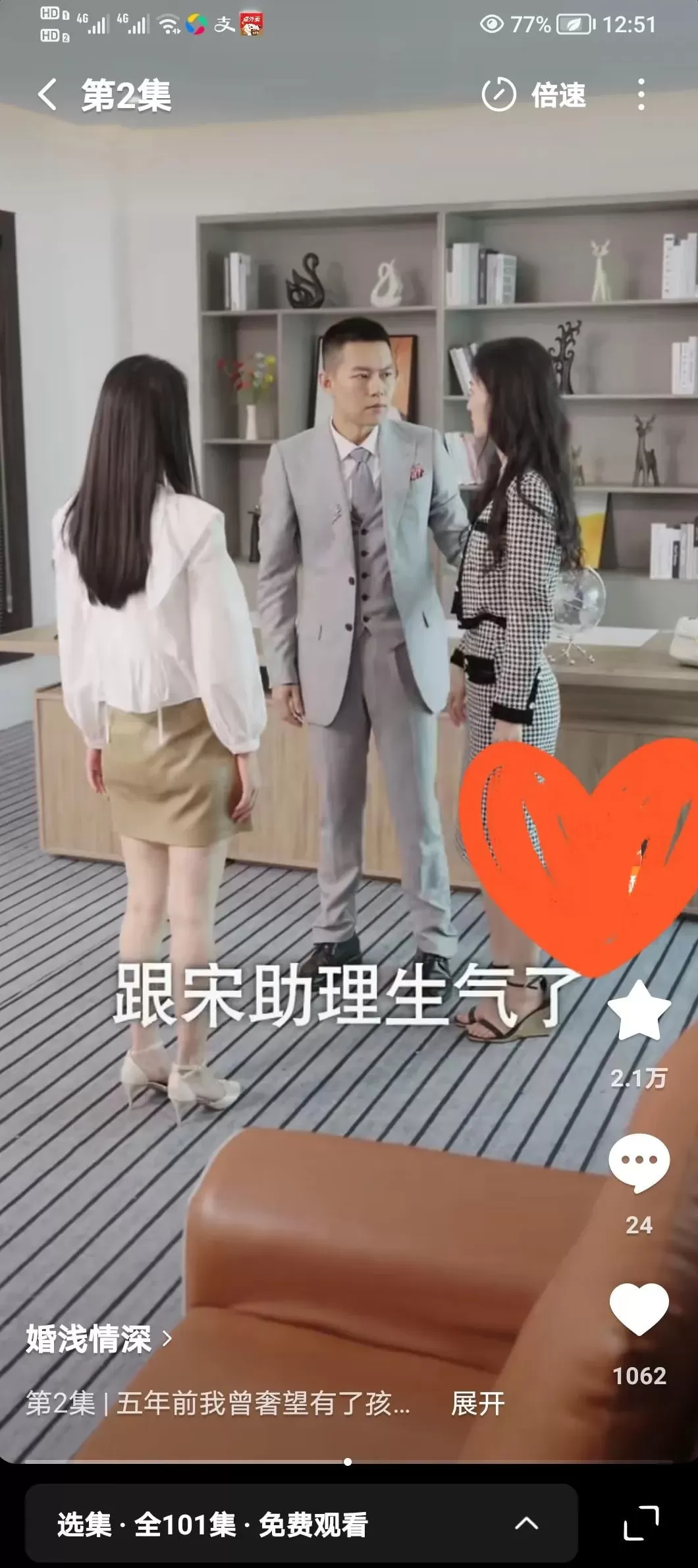 她和冶彦合作的短剧《婚浅情深》